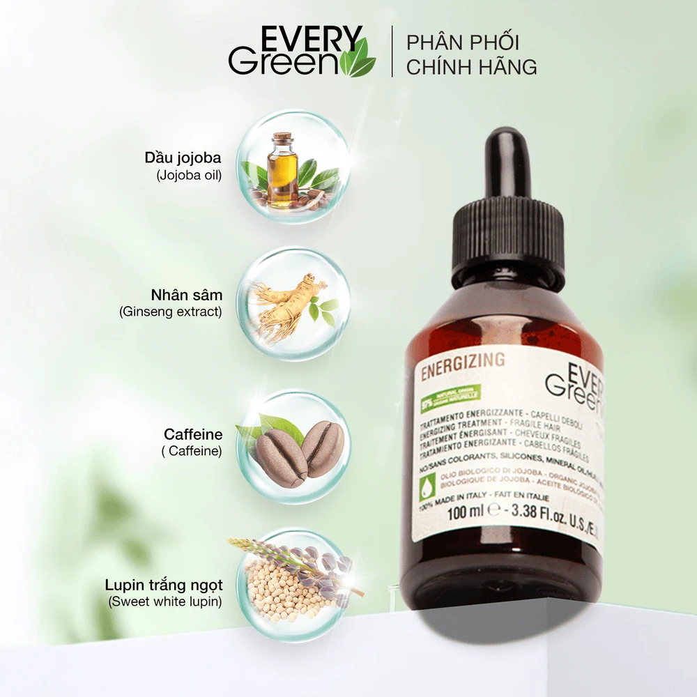 Caffeine: Hoạt chất kích thích tuần hoàn máu dưới da đầu, giúp nuôi dưỡng chân tóc và ngăn ngừa rụng tóc do tăng cường độ chắc khỏe và giảm gãy rụng.