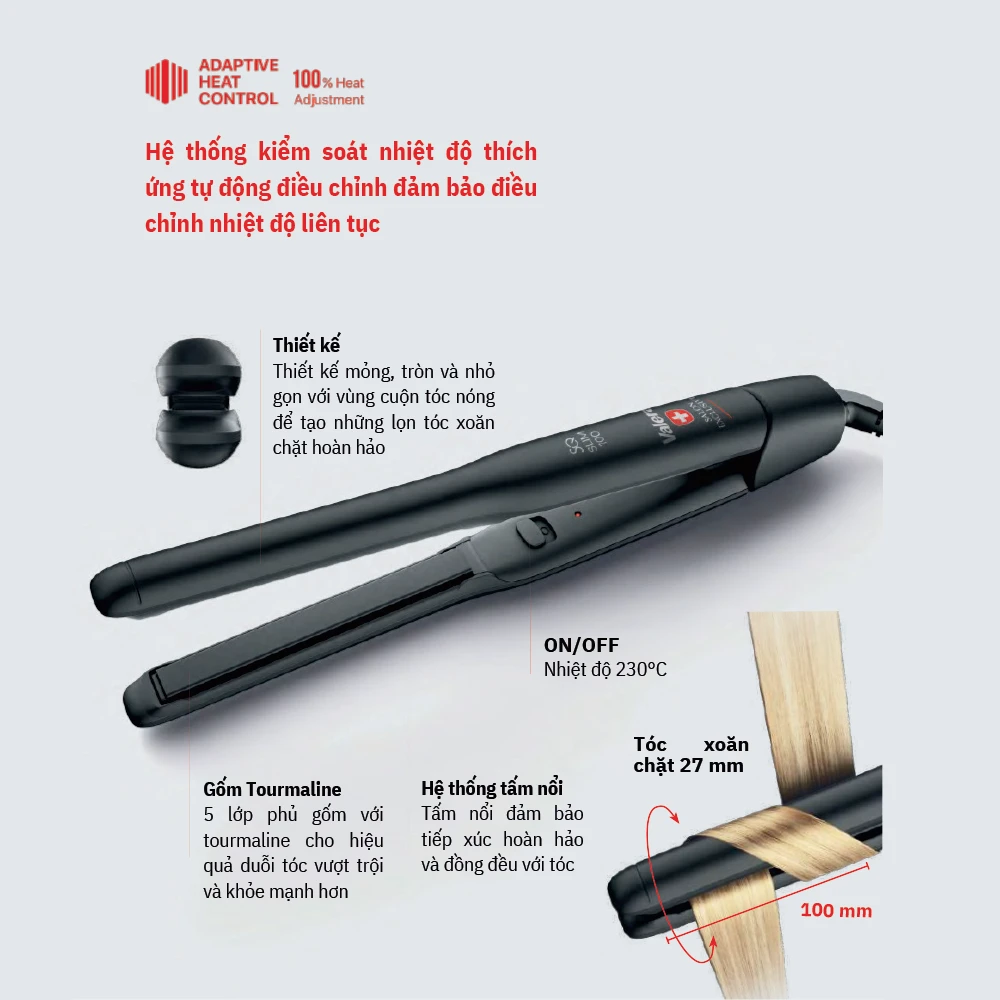 Tính năng: Tạo lọn tóc xoăn chặt đường kính 27 mm.